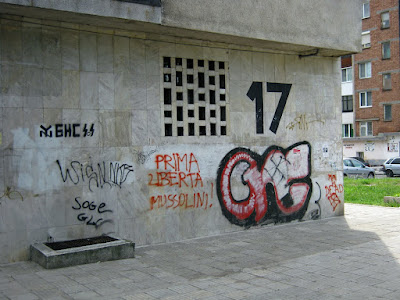Yambol's block 17 is clearly seen here and what a bore it is with the number on its own. So some kids have taken it upon themselves to brighten up the plain old number 17 and give a little company with graffiti. Although not a fan of graffiti, this somehow does lift the atmosphere in this case.